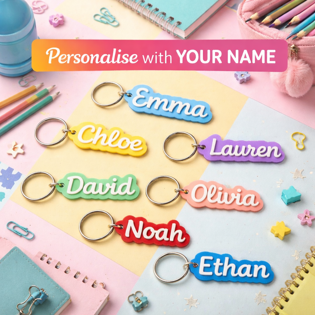 Each keyring is custom-made with your chosen name in a fun, easy-to-read style, making it practical and adorable.