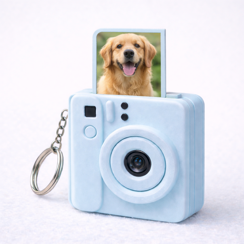 Choose your preferred camera colour, upload your photo, and we’ll professionally print and place the photo inside the keychain for you.