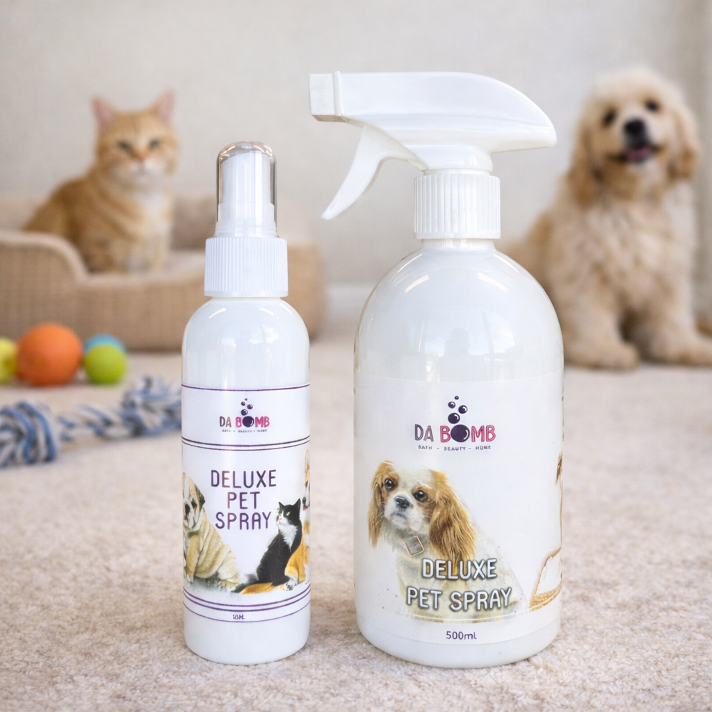 Our pet spray is designed to freshen your pet’s coat and eliminate unpleasant odours. It contains gentle, pet-safe ingredients that leave your furry friend smelling great while being kind to their skin.