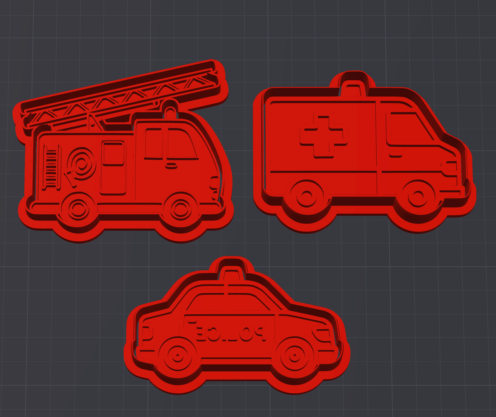 Emergency Vehicles Cookie Cutter & Fondant Stamp Set (3 Pieces)