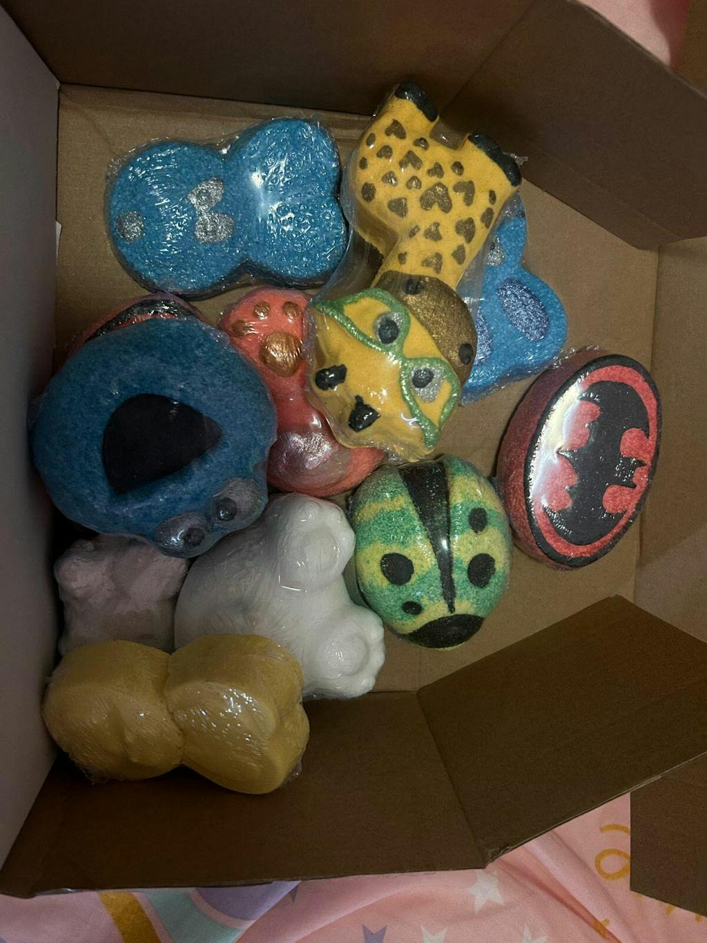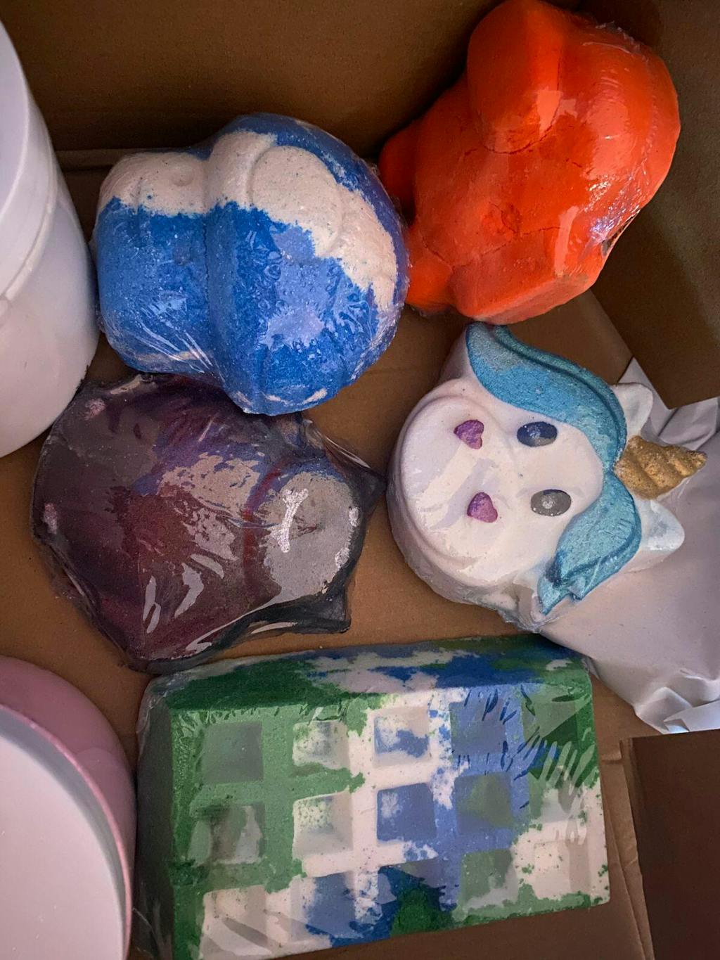 Our Imperfect bath packs contain 5 imperfect bath bombs. They may be discoloured, damaged, they may have lumps, the painting may be not up to our standards, or they may be soft.