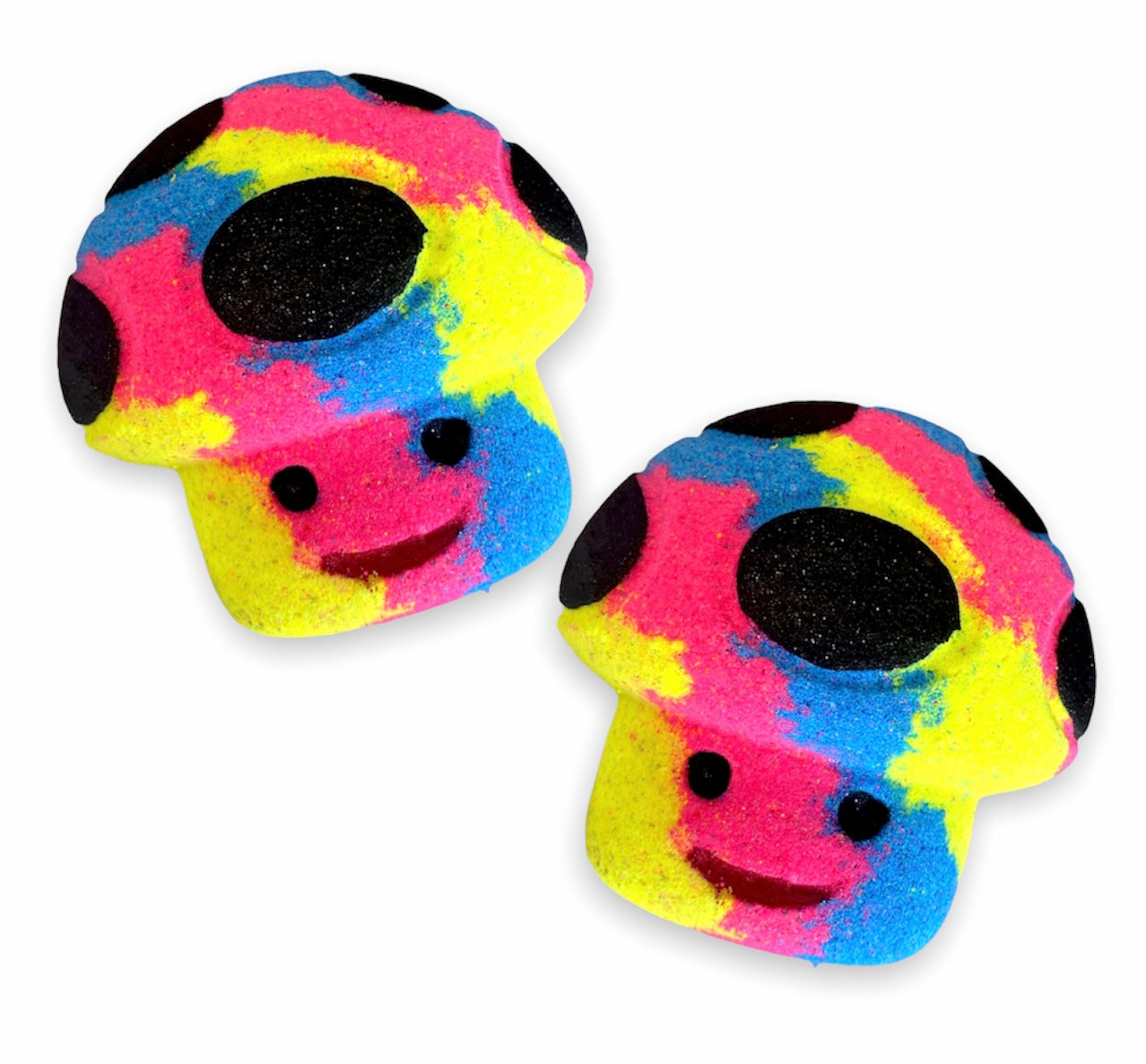 How can you not enjoy a bath with our Rainbow Sour Strips Mushroom Bath Bomb
