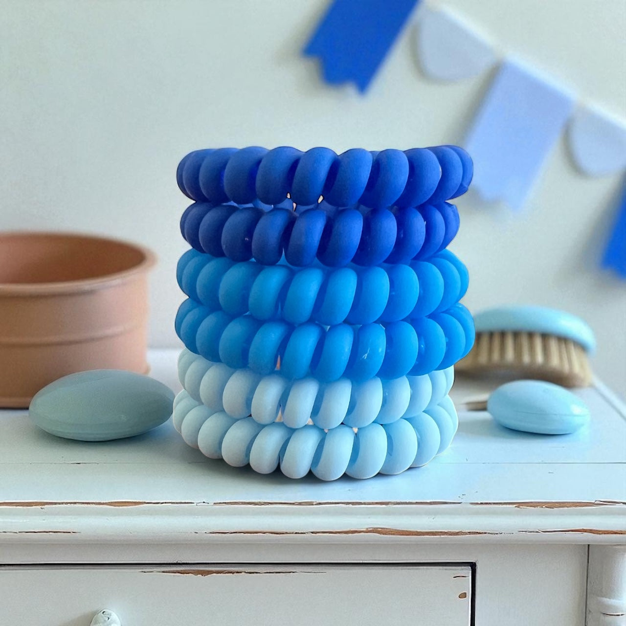 Spiral Stretchy Hair Bands - 6 Pack (BLUE)