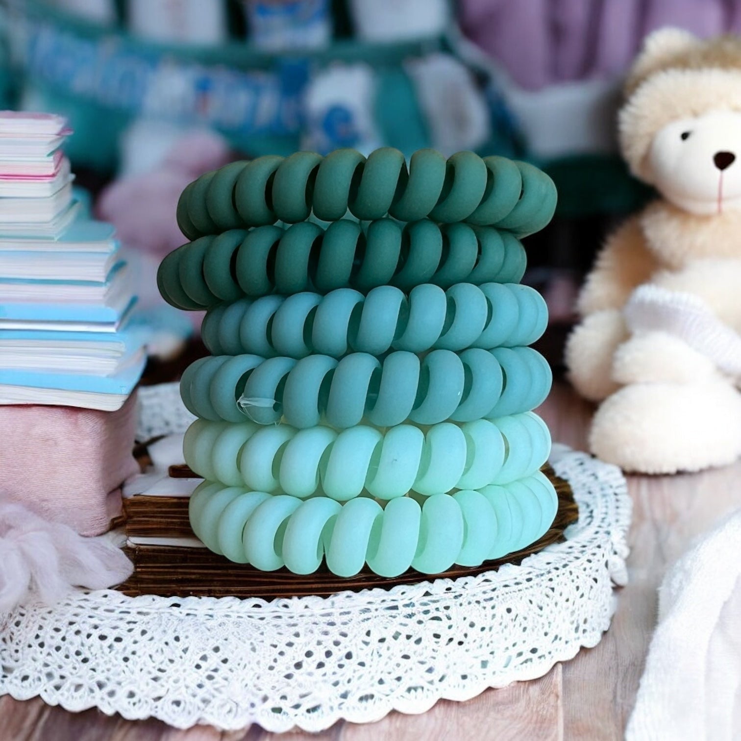 Spiral Stretchy Hair Bands - 6 Pack (GREEN)