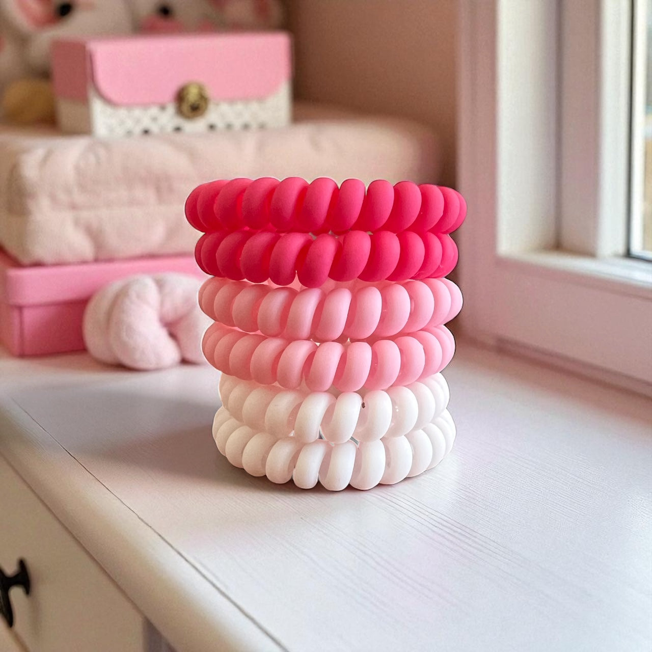 Spiral Stretchy Hair Bands - 6 Pack (PINK)