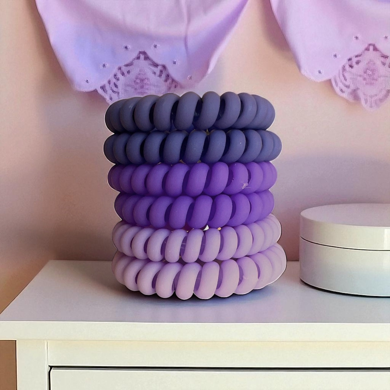 Spiral Stretchy Hair Bands - 6 Pack (PURPLE)